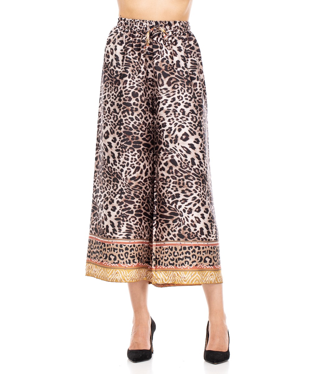 Pantaloni de damă în nuanțe de maro cu imprimeu leopard