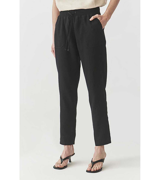Tatuum Pantaloni de damă negri din in și bumbac Onora I Talie elastică