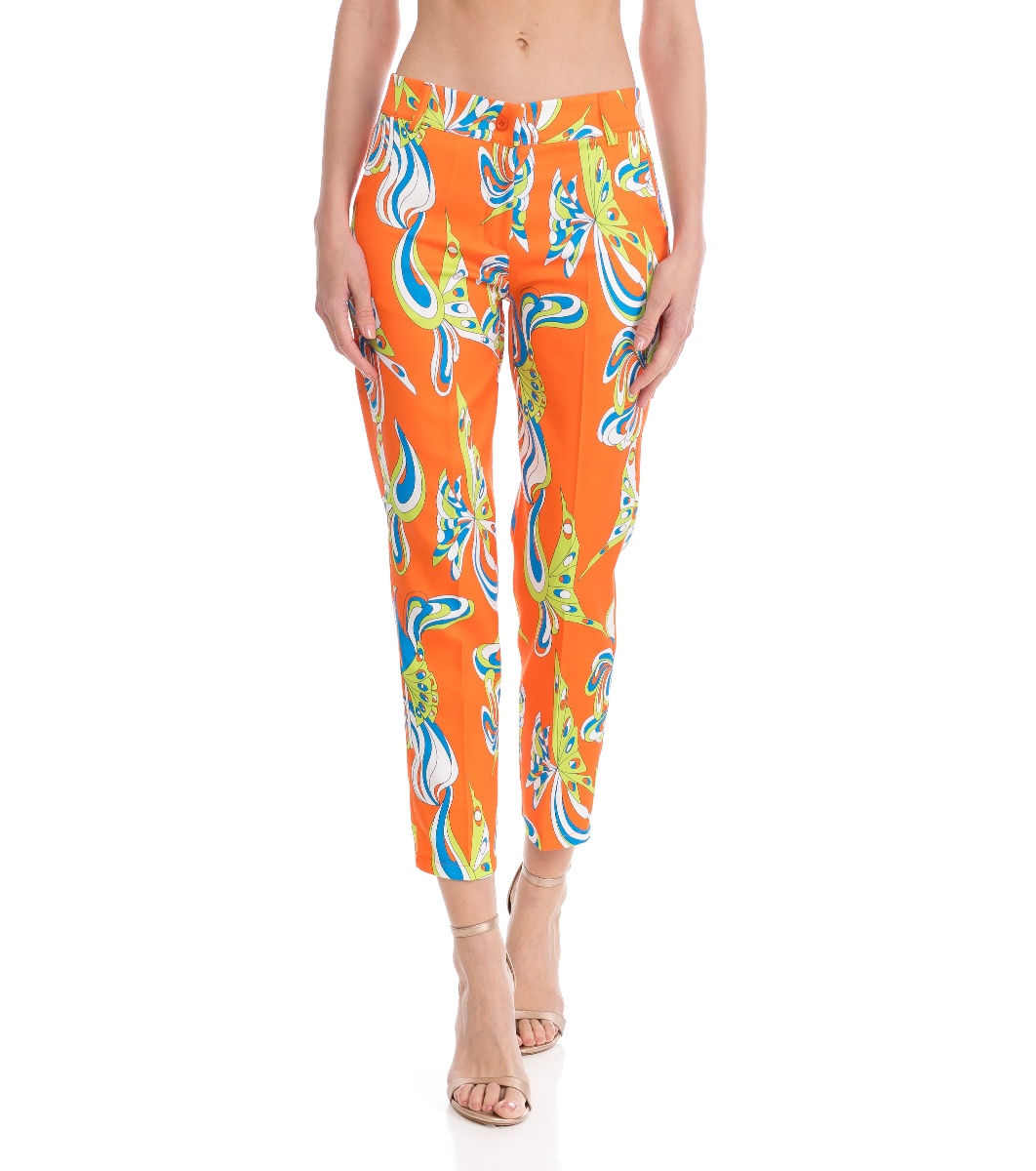 Tantra Pantaloni de damă portocalii cu imprimeu Talie înaltă