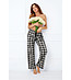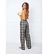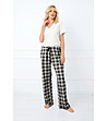 Italian Fashion Pantaloni de pijama din bumbac în carouri, alb-negru, Klara Talie elastică cu șnur