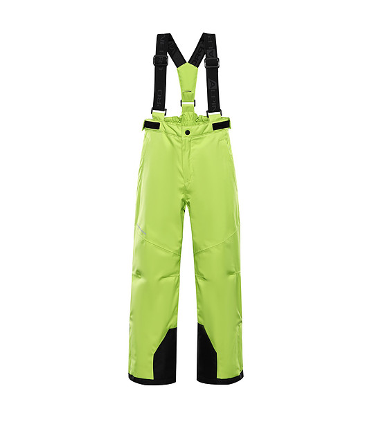 Alpine Pro Pantaloni de schi pentru copii, verde deschis, EDESO 2 DWR - un strat rezistent care nu permite apei să pătrundă în material, ci o transformă în picături care se preling pe suprafață.