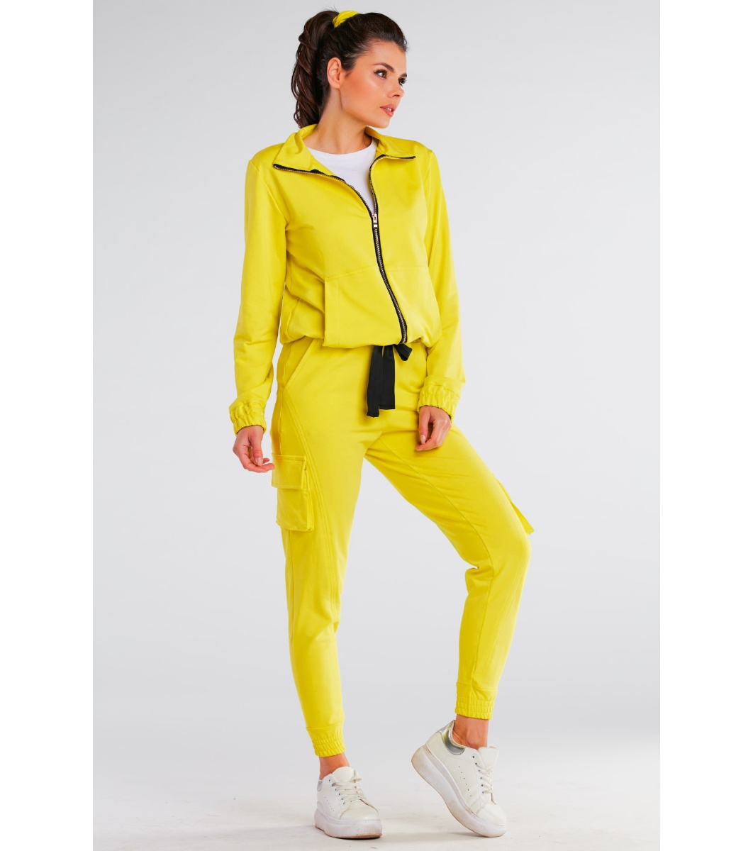 Pantaloni de trening de damă din bumbac lime, cu buzunare cargo