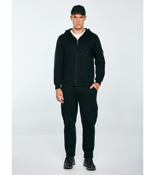Pantaloni de trening negri din bumbac cu buzunare cargo
