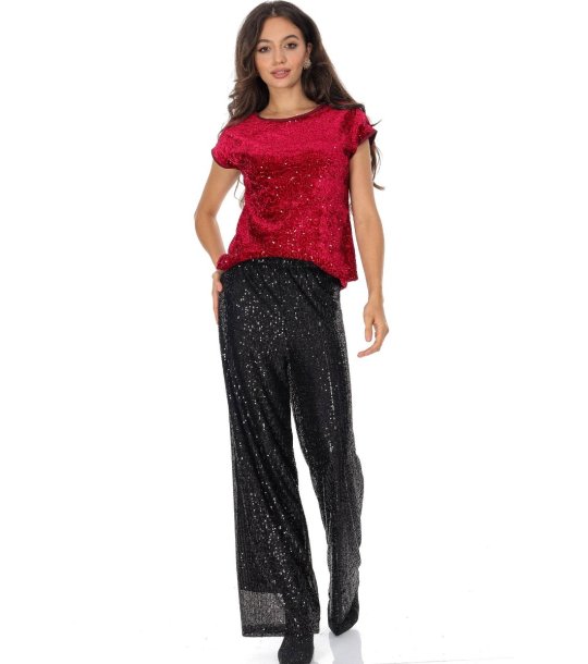 Pantaloni eleganti și evazat cu paiete Negru Aimelia