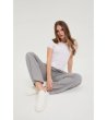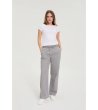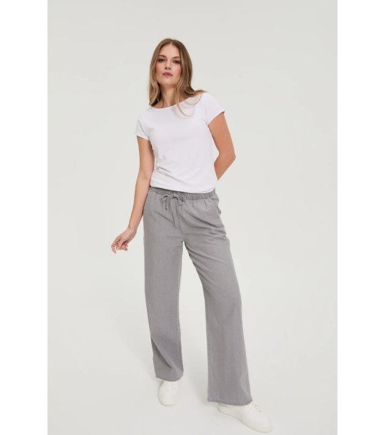 Moodo Pantaloni gri din bumbac pentru femei, cu legături Pantaloni lungi cu croială dreaptă și largă.