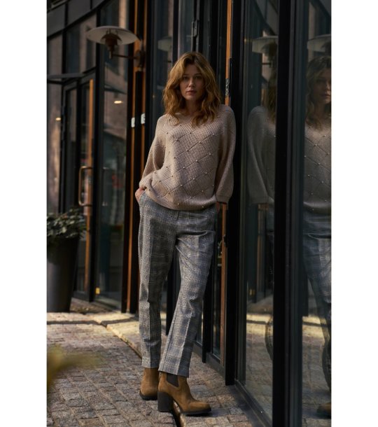 Pantaloni gri în carouri fine pentru femei