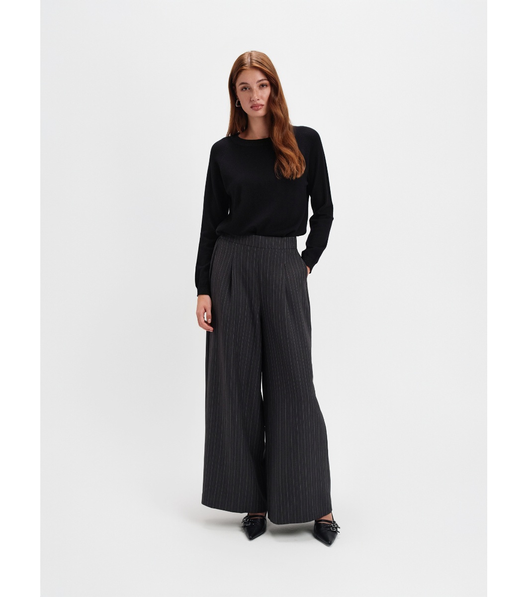 Top Secret Pantaloni gri închis cu dungi pentru femei Picior lat și drept