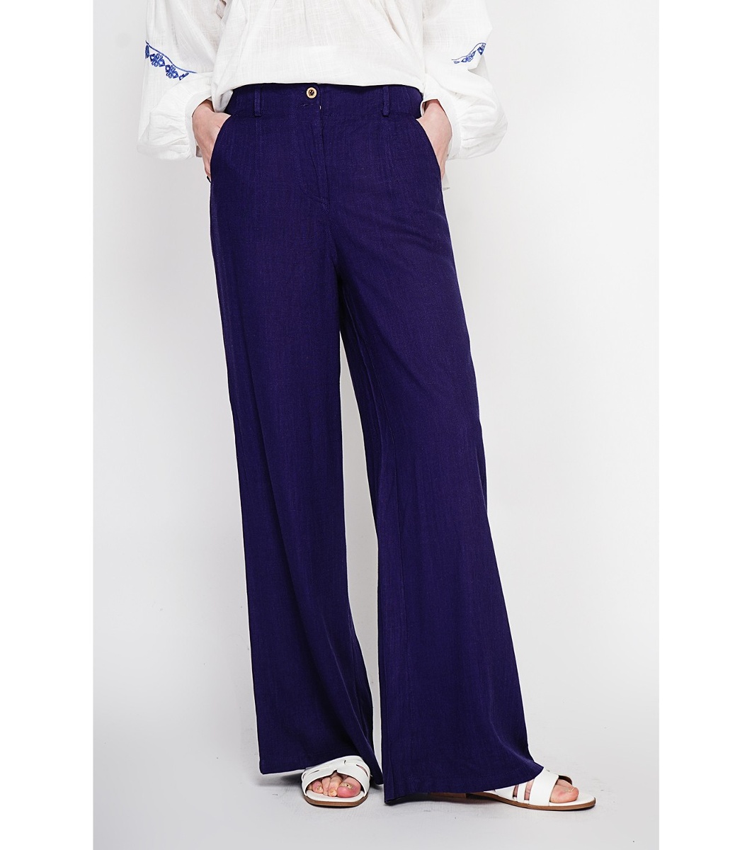 Pantaloni largi de damă, albastru închis