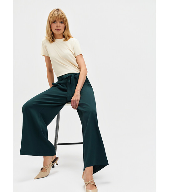 Top Secret Pantaloni largi de damă verde închis cu curea Lați