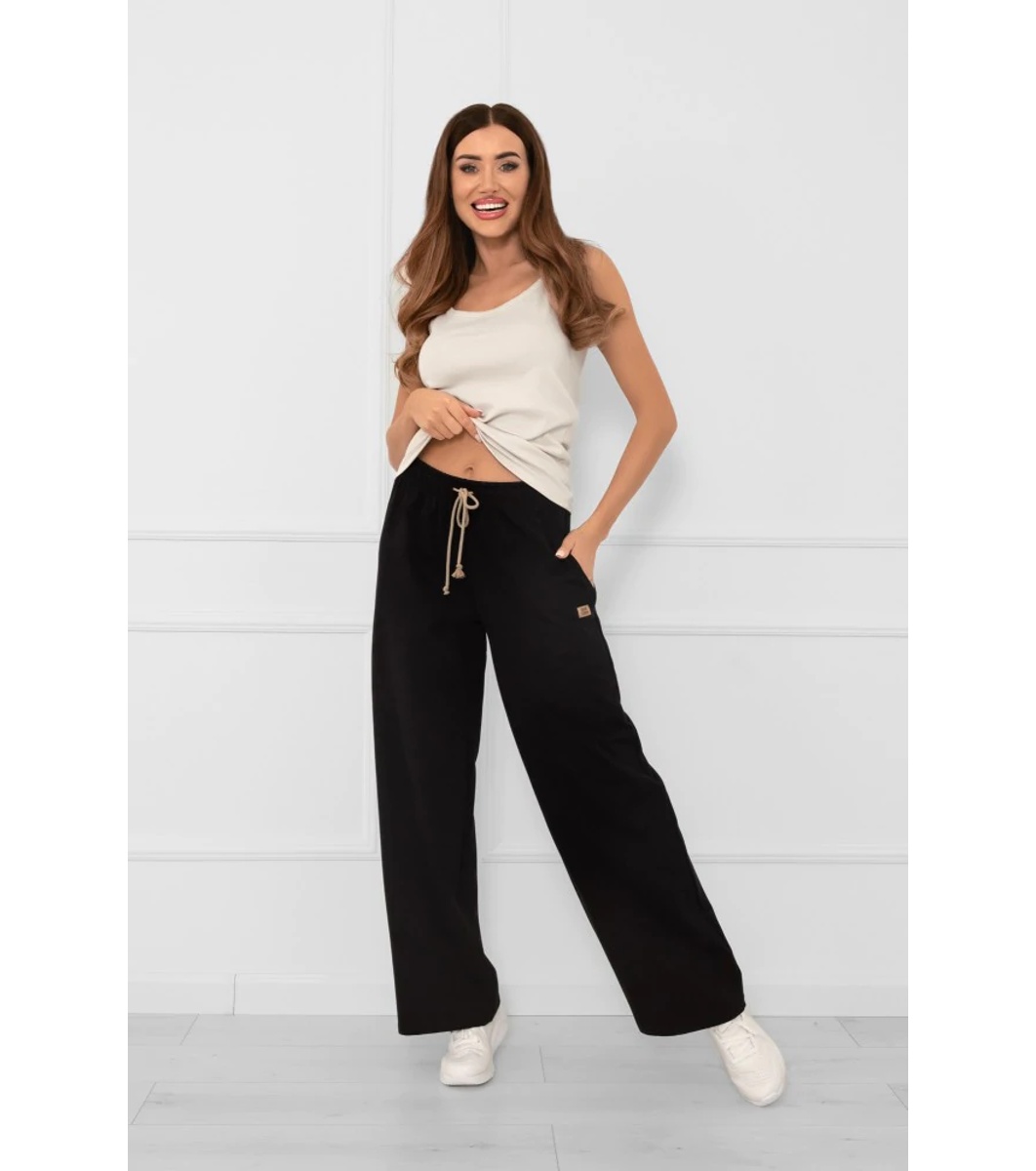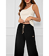 Italian Fashion Pantaloni largi din bumbac pentru femei, negri, Caro Talie elastică cu șnur