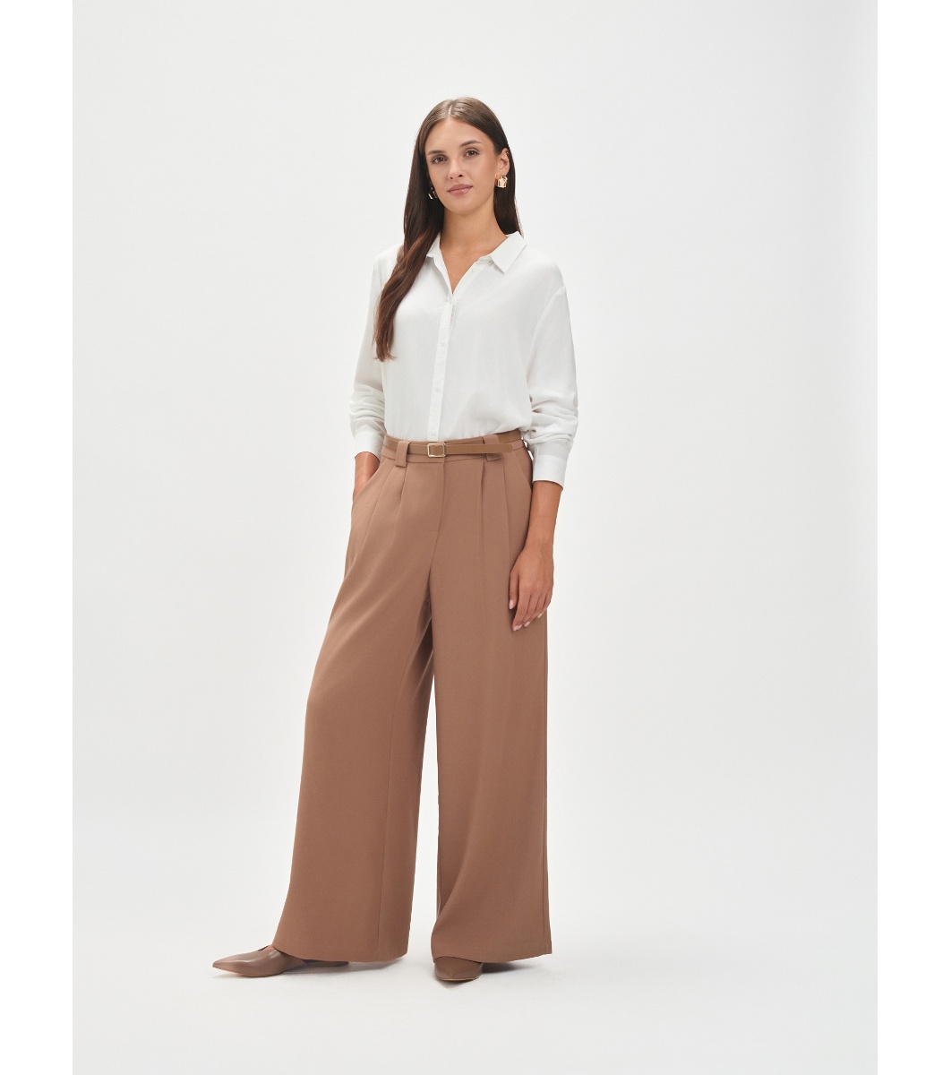 Top Secret Pantaloni largi maro pentru femei cu curea Cu croi larg