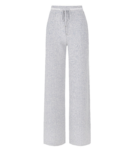 Bucură-te de lejeritatea și confortul luxos al acestor pantaloni largi, cu croială dreaptă, lejeră, tricotați dintr-un amestec somptuos de cașmir și lână merinos, care oferă o moliciune mătăsoasă și o căldură excepțională. Structura fin nervurată asigură un confort optim și un aspect elegant, în timp ce talia elastică cu șnur reglabil garantează o potrivire perfectă. Dungile contrastante jucăușe din talie adaugă o notă de varietate, iar fantele laterale sporesc confortul mișcărilor. Buzunarele laterale oferă un plus de confort. Creează un ansamblu remarcabil și atent asortând acești pantaloni cu pulovere asortate din aceeași serie, pentru un aspect uniform.