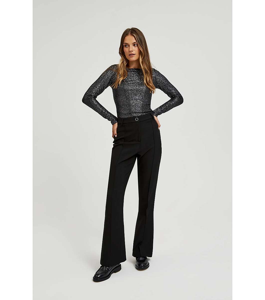 Moodo Pantaloni negri de damă Mona Închidere cu fermoar și nasturi