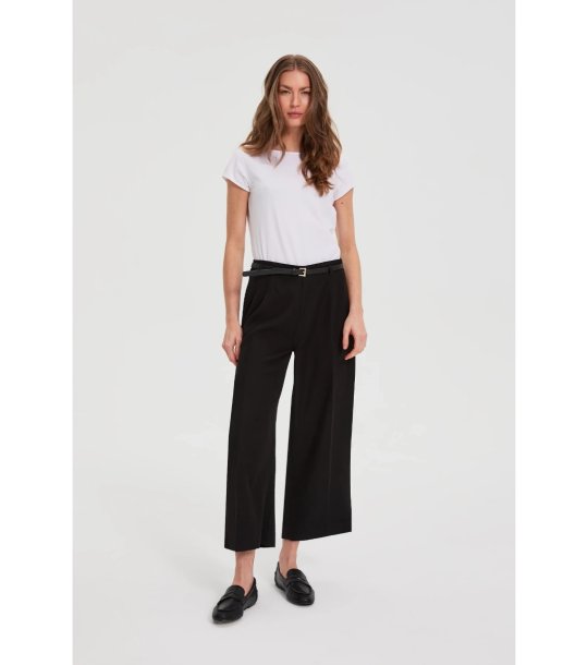 Moodo Pantaloni negri de damă cu curea Croi larg, drept, cu lungime deasupra gleznei.