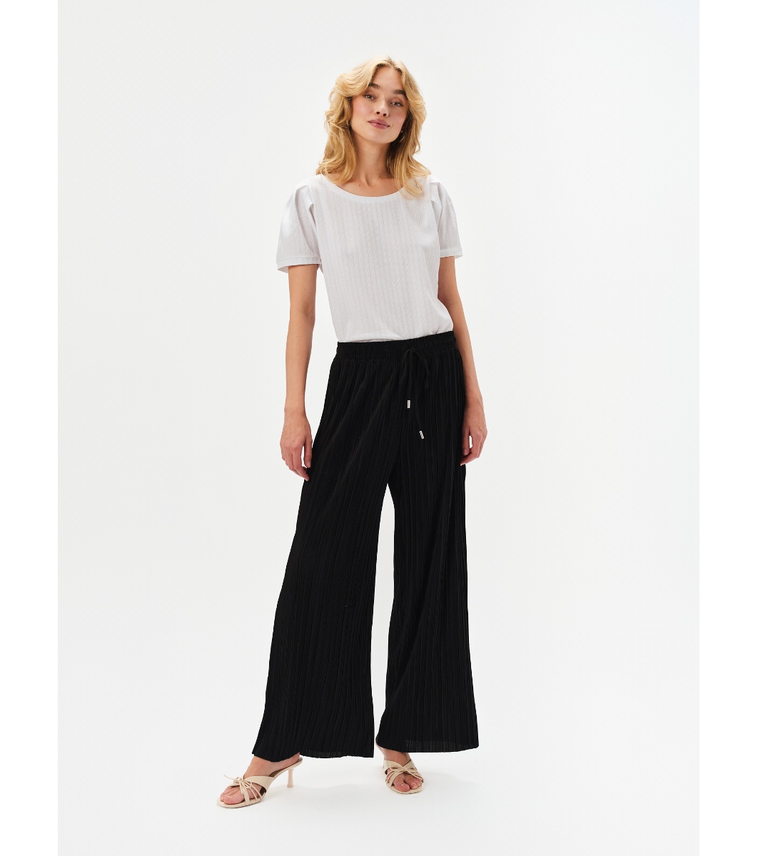 Top Secret Pantaloni negri plisați, cu croi larg, pentru femei Textură plisată