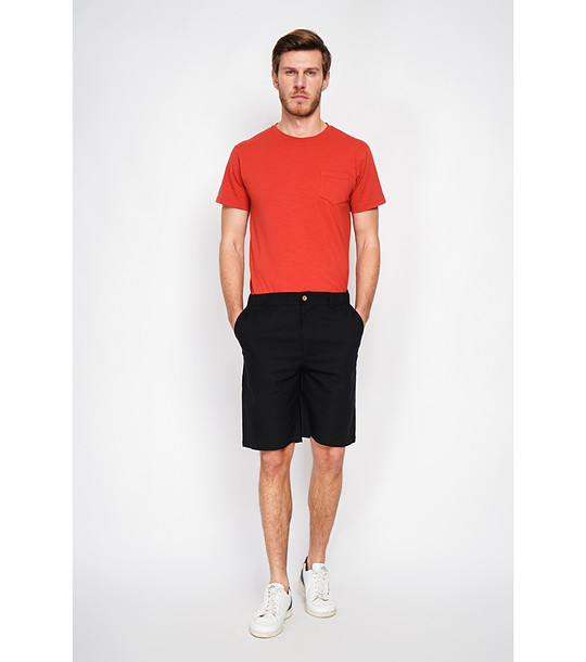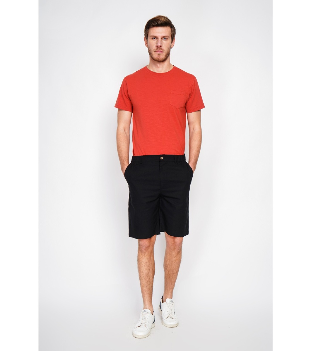 Secret Du Lin Pantaloni scurți Bermuda negri pentru bărbați, cu talie elastică Siluetă semi-mulată.