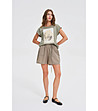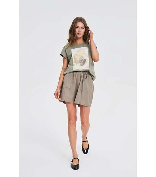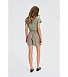 Pantaloni scurți de damă, de culoare măsliniu, confecționați din bumbac și in