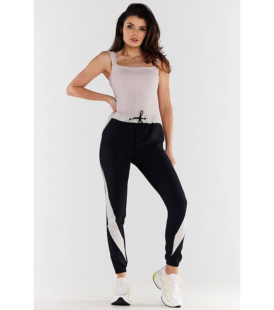 Awama Pantaloni sport Ines negri și bej Talie elastică cu șnur