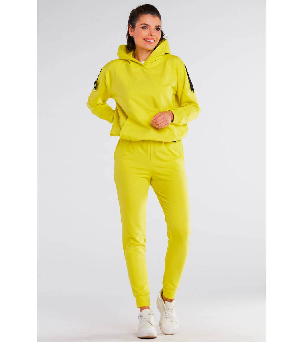 Infinite you Pantaloni sport din bumbac pentru femei, de culoare lime Talie elastică