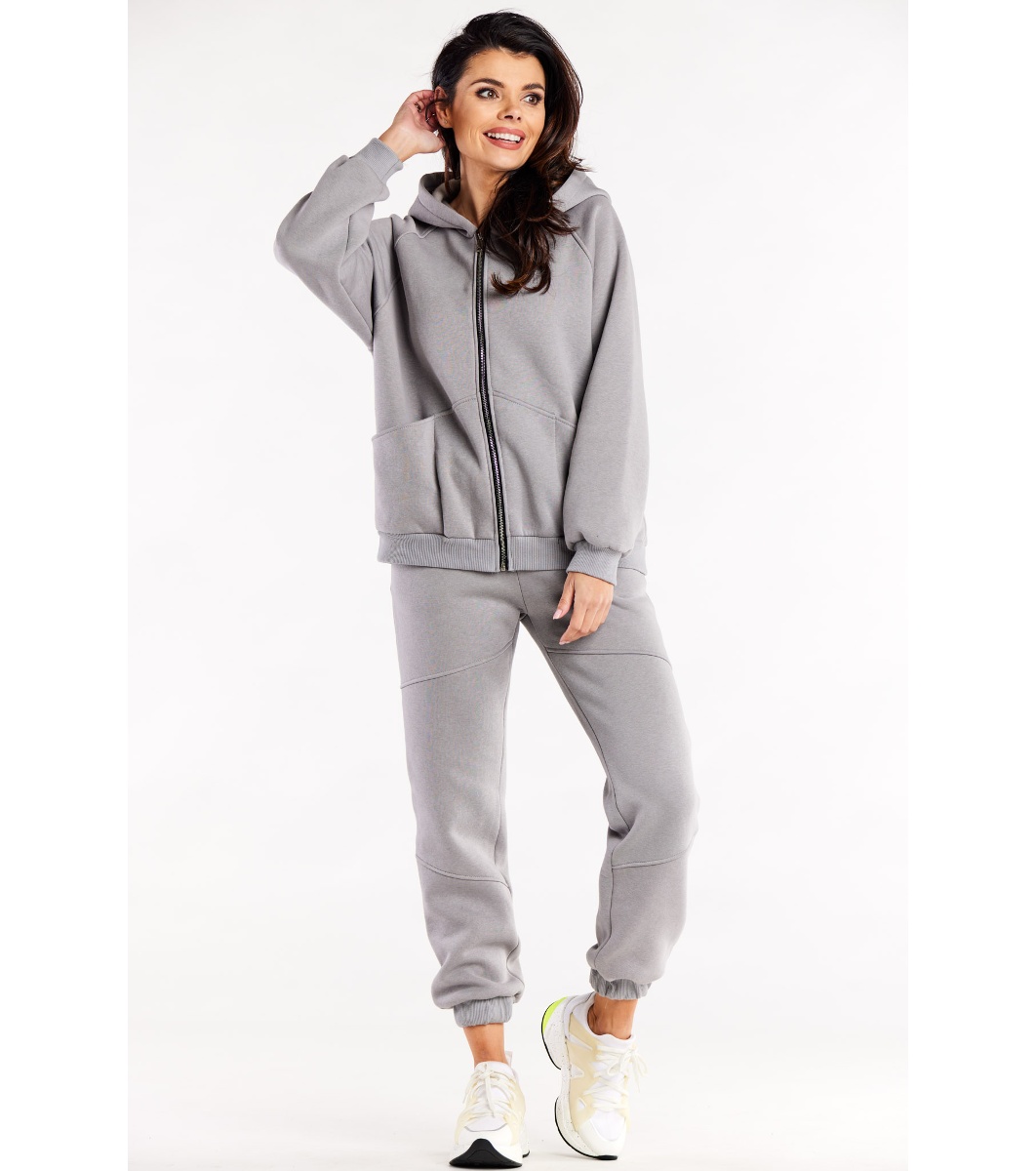 Infinite you Pantaloni sport gri din bumbac pentru femei Talie elastică