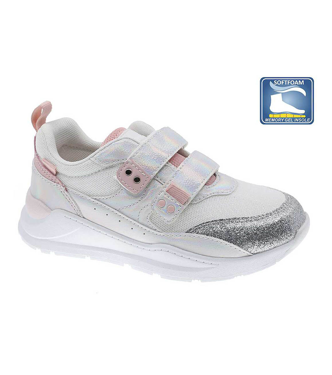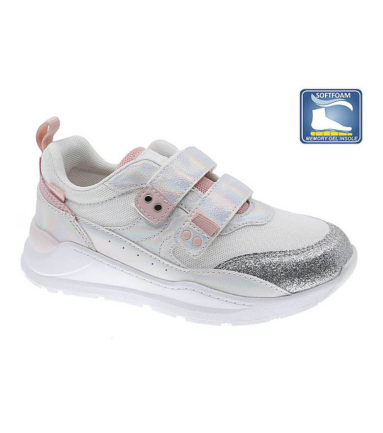 Pantofi albi pentru copii cu panou cu sclipici