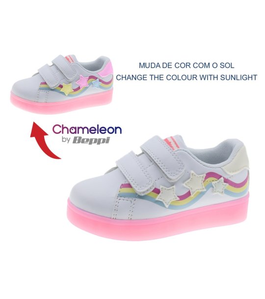 Beppi Pantofi albi pentru copii cu velcro care își schimbă culoarea la soare Pantofi casual pentru copii