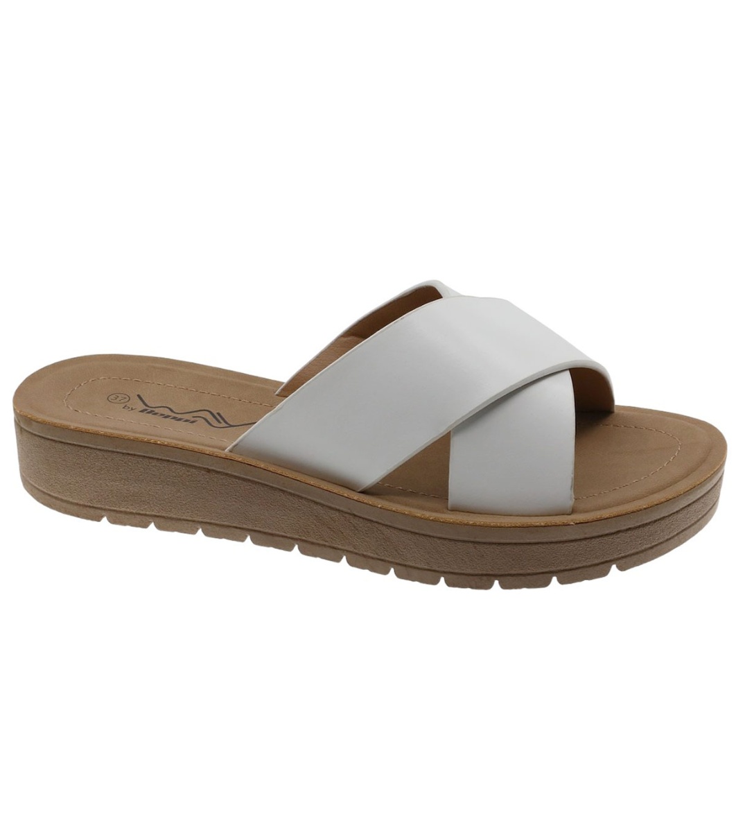 Beppi Papuci albi cu platformă pentru femei Baretă lată, încrucișată