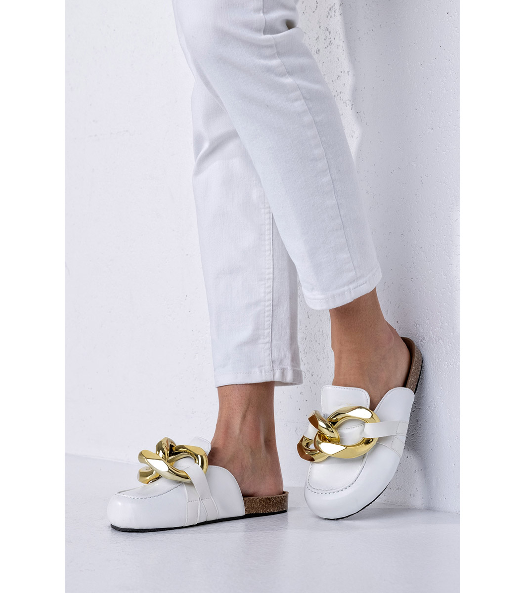 Musk Papuci albi de damă cu detaliu auriu Della Inchis in fata