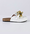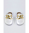 Papuci albi de damă cu detaliu auriu Della