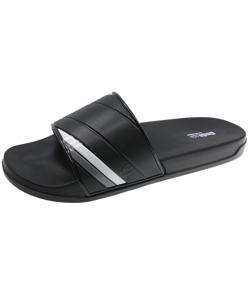 Papuci bărbătești negri cu dungi contrastante