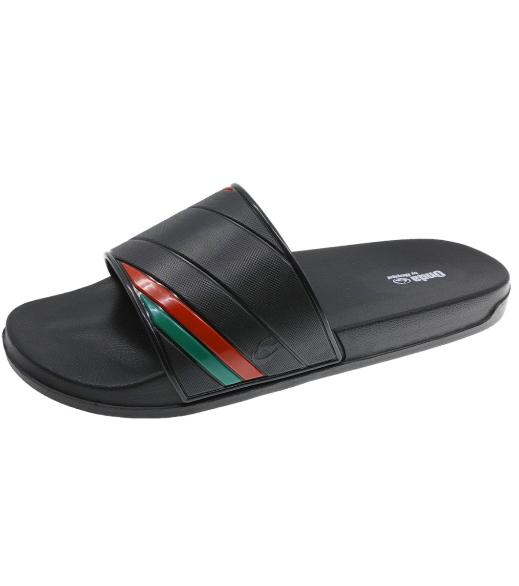 Papuci bărbătești negri cu dungi roșii și verzi