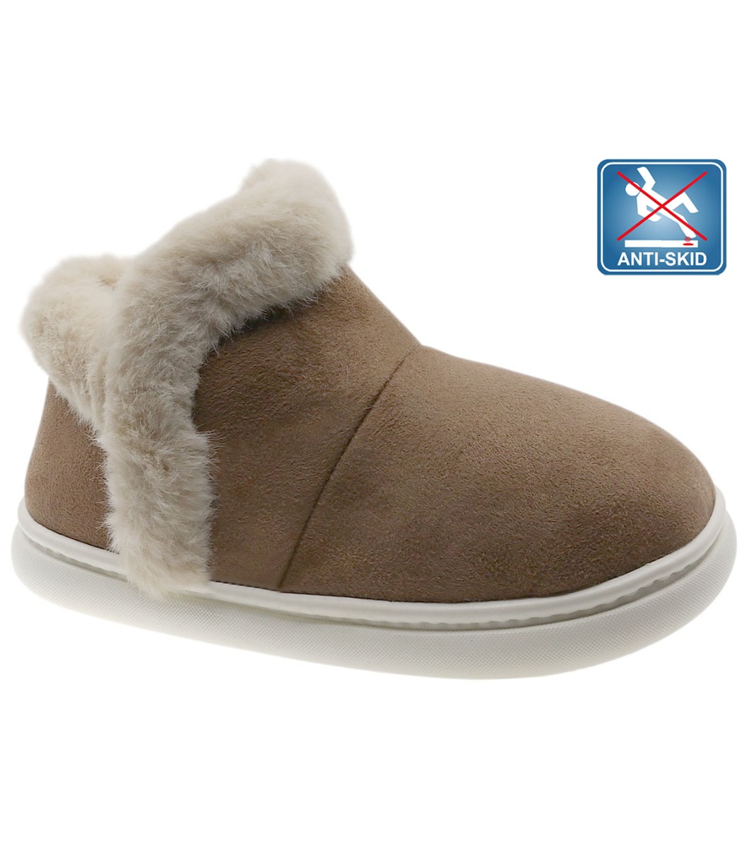 Papuci de copii de culoarea cămilă cu talpă antiderapantă