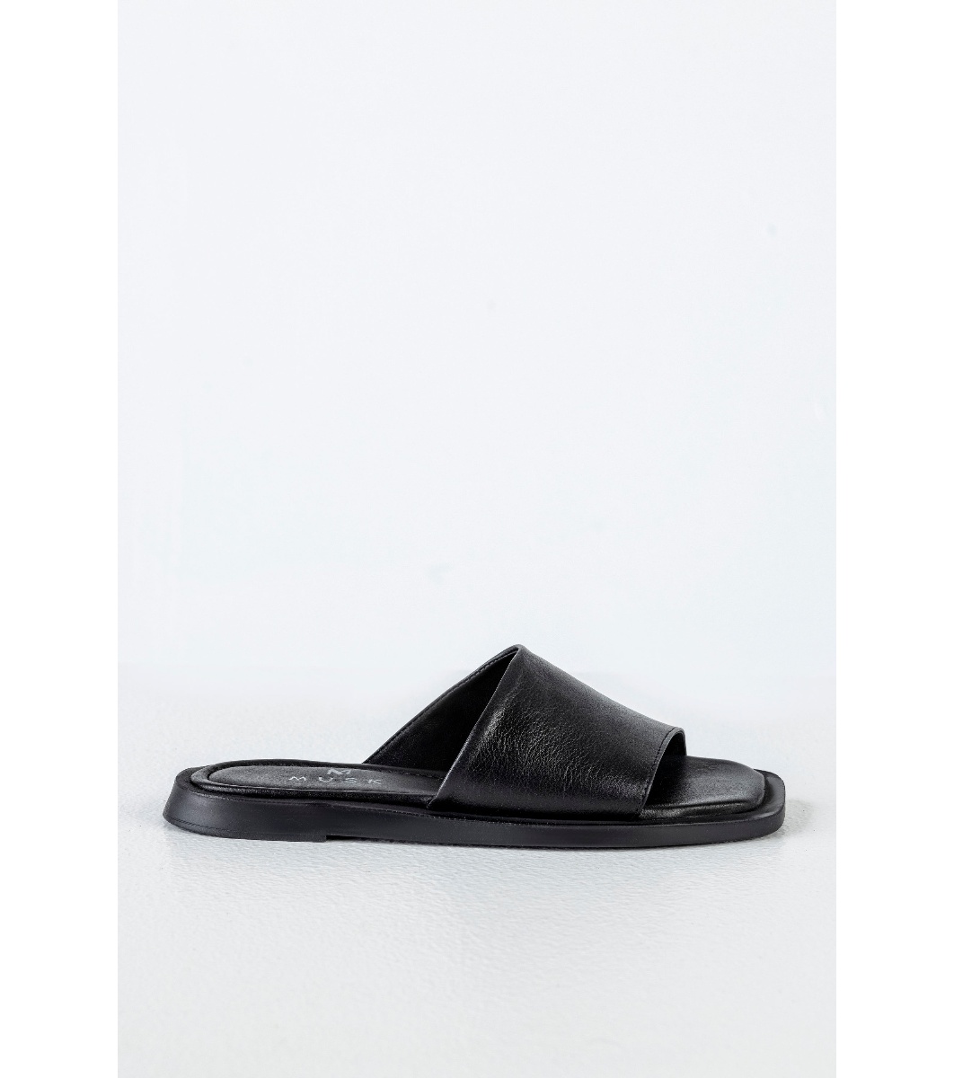 Musk Papuci de damă negri din piele Zia Teșiți în față