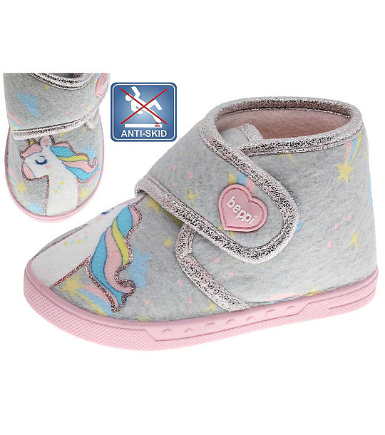 Beppi Papuci pentru bebelusi in gri si roz Unicorn marimea 19-23 Papuci înalți