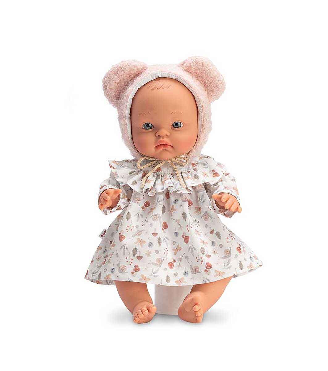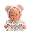 Asi Papusa Alex cu o rochie colorata si o palarie roz pufoasa cu urechi