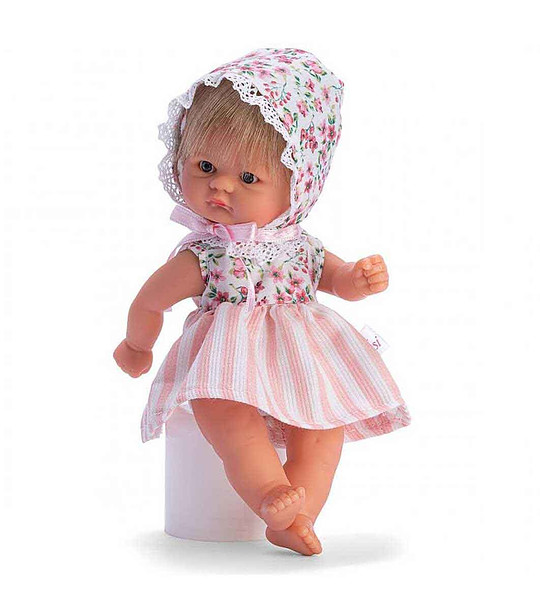 Păpușa Chiquita din seria Bomboncin de la compania spaniolă Asi este un bebeluș drăguț, de 20 cm înălțime, cu păr scurt blond cu breton.