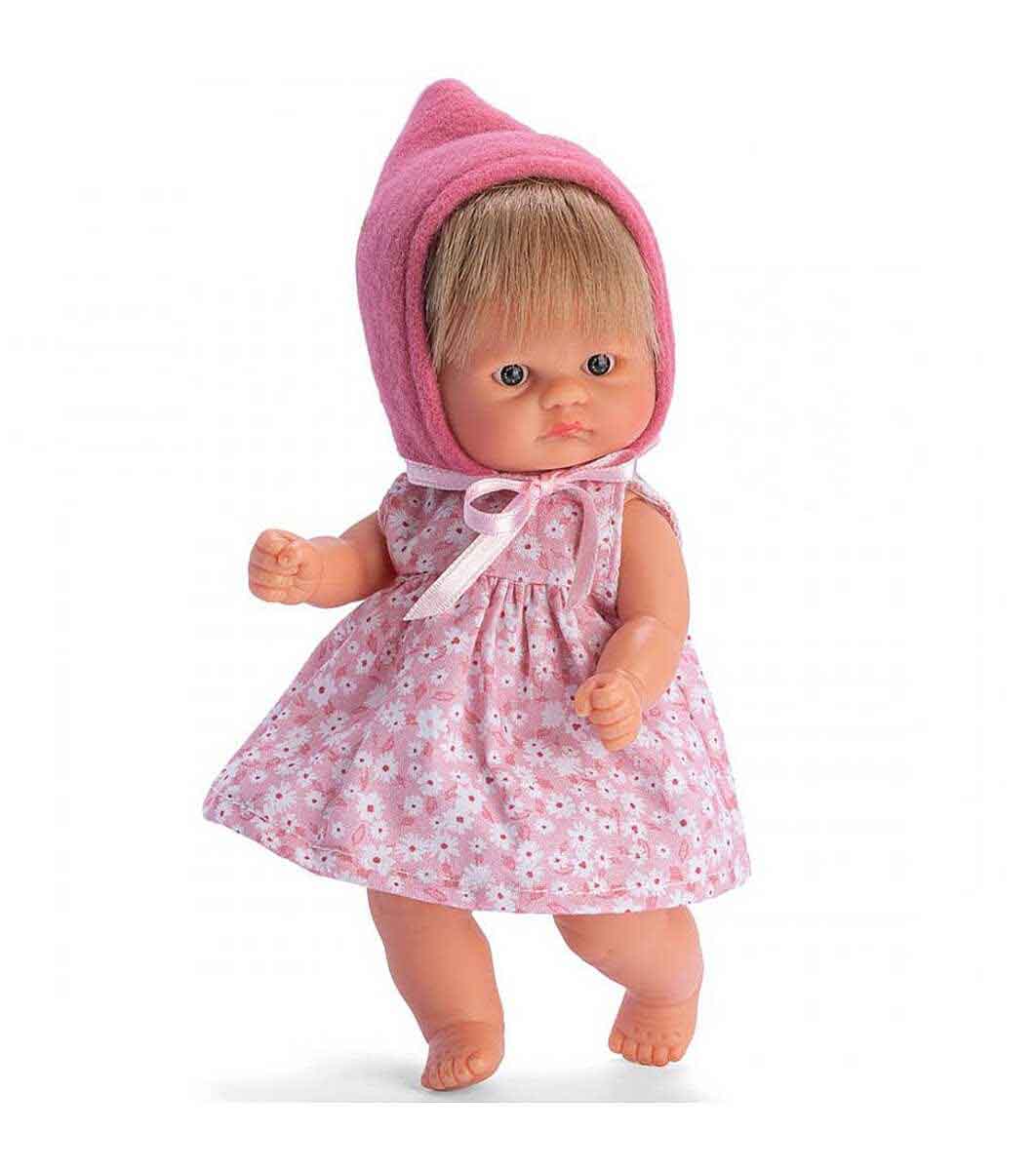 Păpușa Chiquita din seria Bomboncin de la compania spaniolă Asi este un bebeluș drăguț, de 20 cm înălțime, cu păr scurt blond cu breton.