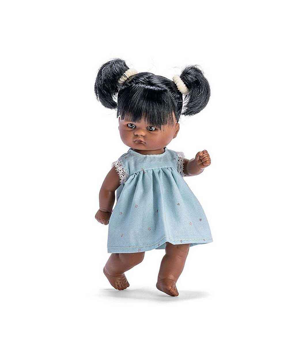 Asi Papusa neagra cu rochie florala albastru deschis Tommy