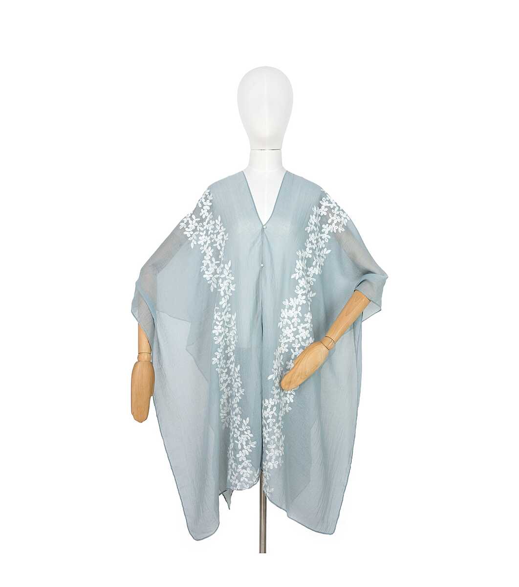 ART of POLO Pareo gri deschis cu broderie florala Marsala Pareo brodat pentru vară.