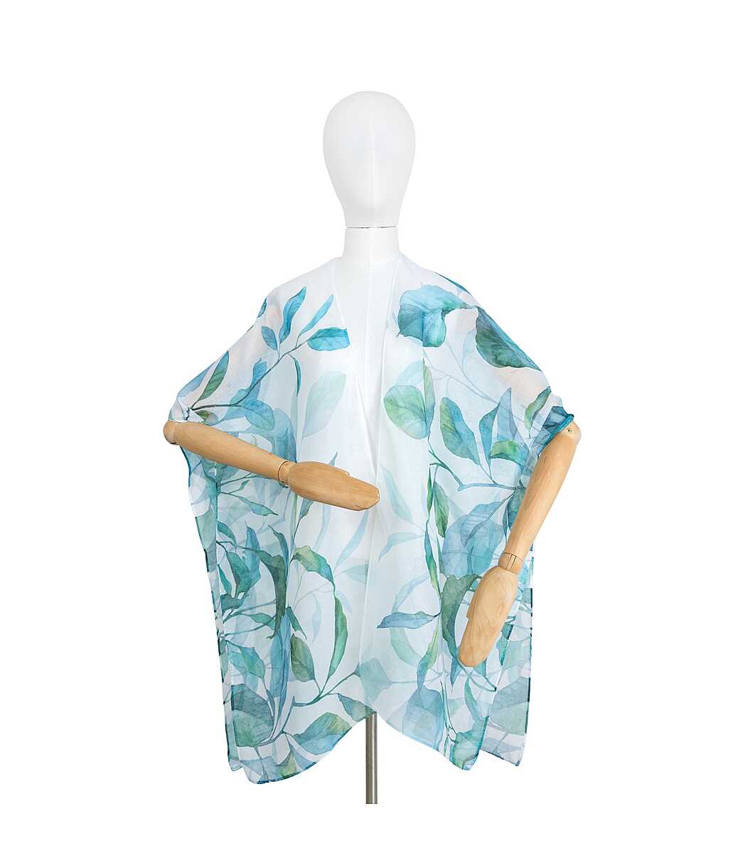 Pareo în alb cu imprimeu floral albastru-verde Sorso