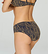 Partea de jos a costumului de baie cu frunze albastru bleumarin și auriu
