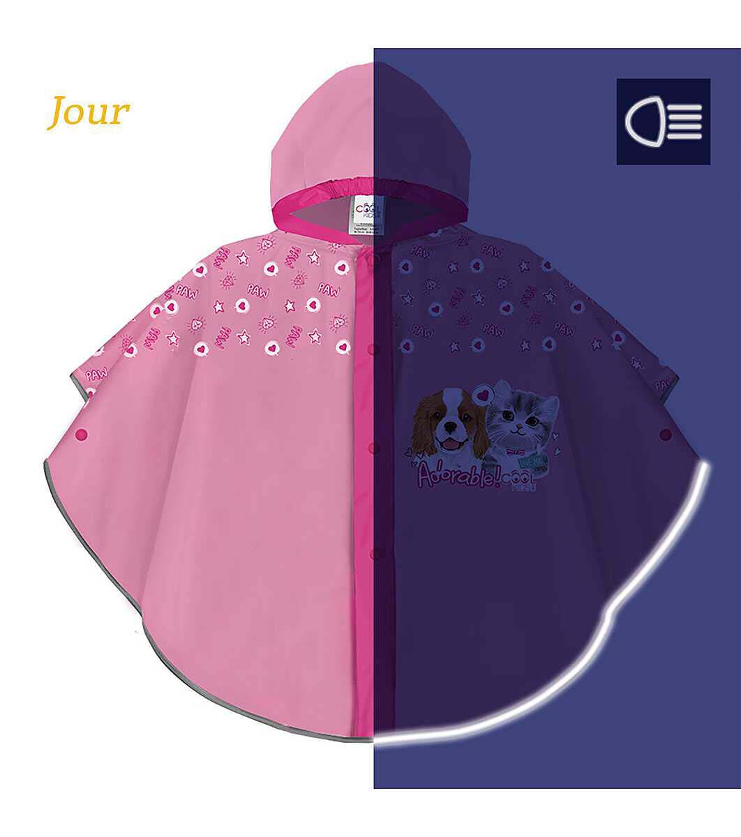 Perletti Pelenă de ploaie tip poncho pentru copii roz pentru copii 3 - 6 ani cu imprimeu Câine și Pisică Țesătură rezistentă la vânt