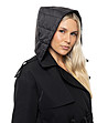 Biston Pelerină neagră de ploaie cu glugă pentru femei Amisa Închidere cu două rânduri de nasturi