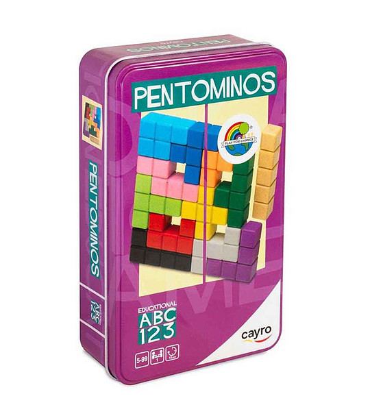 Cayro Pentomino într-o cutie de metal Copii, ați auzit de jocul pentomino? Presupunem că răspunsul inițial este nu. Deci, să vă spunem puțin mai multe despre cuvântul în sine, este atât de ușor asociat cu jocul. Cuvântul „pentomino” tradus din greacă este o combinație de două cuvinte „cinci” și „domino”. Acesta este un poligon format din 5 pătrate de aceeași dimensiune, conectate cap la cap. Pentomino, într-o cutie de metal – Ce trebuie să știm despre joc Pentominos sunt o formă specială a jocului polyomino. Acestea sunt forme formate prin conectarea exact a cinci pătrate identice de aceeași dimensiune. Jocul conține 12 elemente diferite, fiecare cu propria sa formă unică. Sunt realizate din lemn de înaltă calitate. Unele elemente sunt vopsite în culori frumoase, strălucitoare, în timp ce altele sunt într-o culoare naturală a lemnului, ceea ce face jocul cu adevărat atractiv. Permiteți copiilor să-și petreacă timpul  bucurându-se de jocul logic în timp ce stimulează dezvoltarea unor calități importante, precum: concentrarea, gândirea logică, viteza, orientarea în spațiu etc. Și ce poate fi mai bun decât faptul că micuții pot duce jocul oriunde doresc fără să-și facă griji.