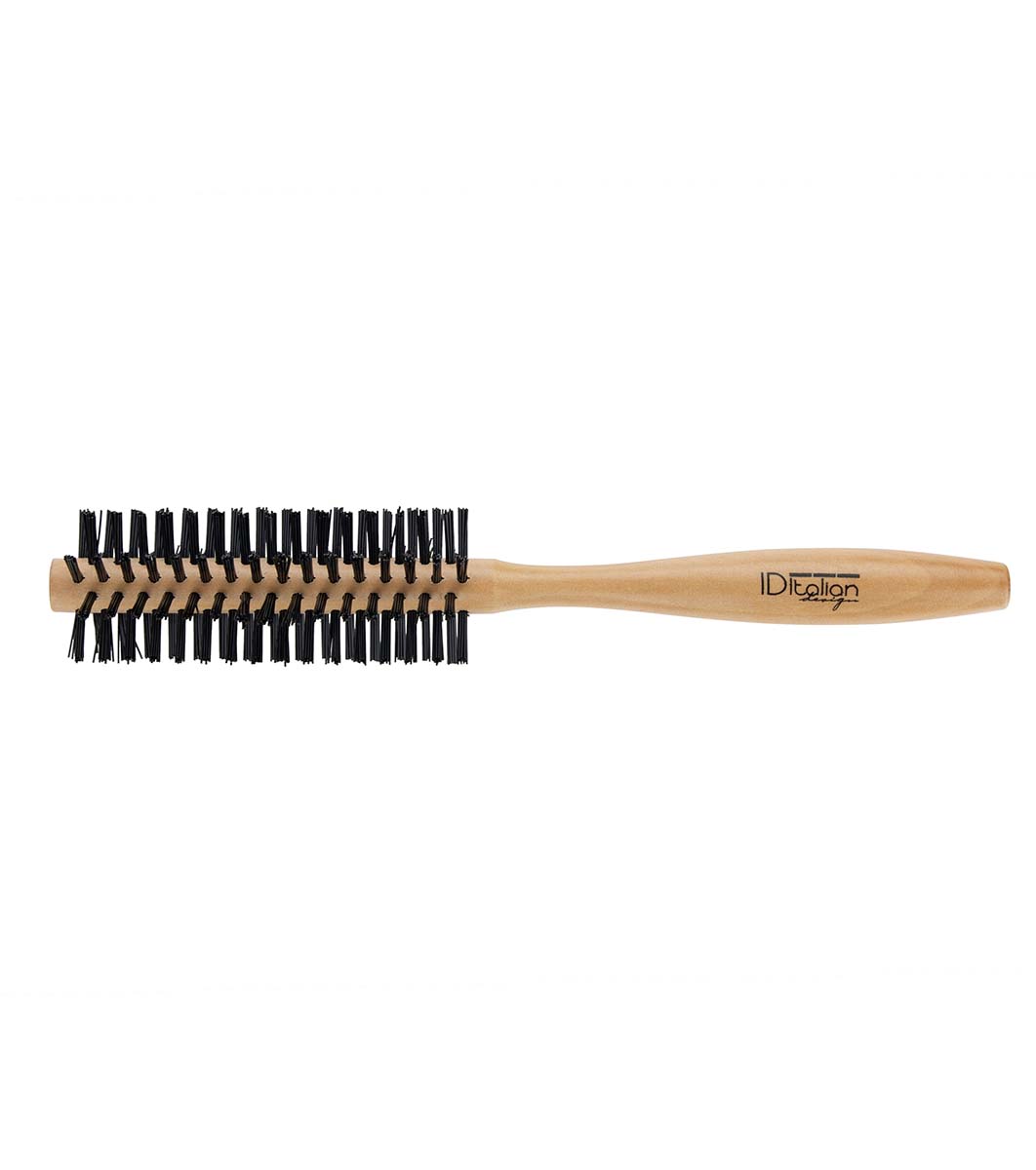 Italian Design Perie de păr rotundă cu mâner din lemn 13 mm • Ideală pentru părul uscat, în special la îndreptare sau ondulare.