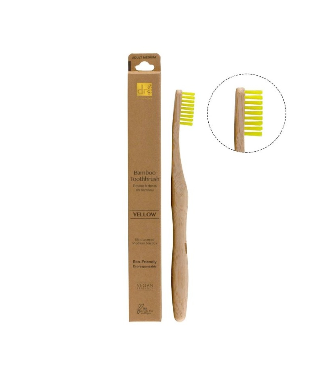 Dr.Botanicals Periuță de dinți medie din bambus, galbenă • La Dr Botanicals, credem în zero deșeuri când vine vorba de periuțele noastre de dinți.