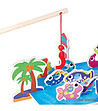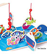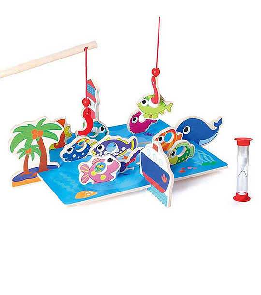 3-5 ani, 5-7 ani În set veți găsi tot ce aveți nevoie pentru a petrece minute incitante jucându-vă - două undițe, o bază de lemn cu o imagine a fundului lacului și 10 pești din lemn. Fiecare peste are o gaura mare de unde trebuie prins cu carligul firului de pescuit. Pentru un joc mai interesant, fiecare pește are un număr diferit de puncte. Setul include și o clepsidră pentru a număra timpul de joc. Regulile sunt simple, iar distracția este garantată.