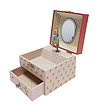 Deschide cutia, rotește cheia și urmărește-l pe iepurașul drăguț într-un costum albastru care se învârte în ritmul muzicii.