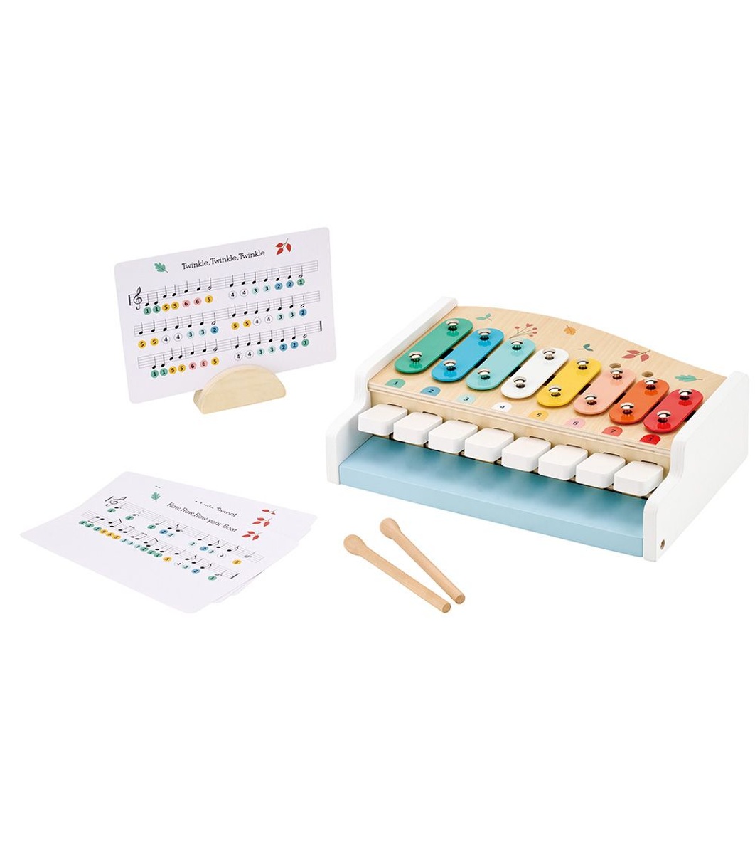 Acest instrument muzical minunat este conceput special pentru micii muzicieni, combinând sunetul clasic al unui xilofon cu tonurile jucăușe ale unui pian.