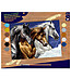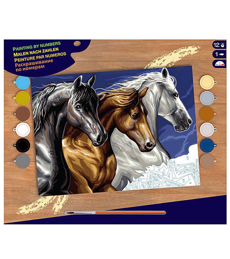 Setul conține: planșă de desen, cu schemă predesenată, vopsele acrilice, pensulă, instrucțiuni